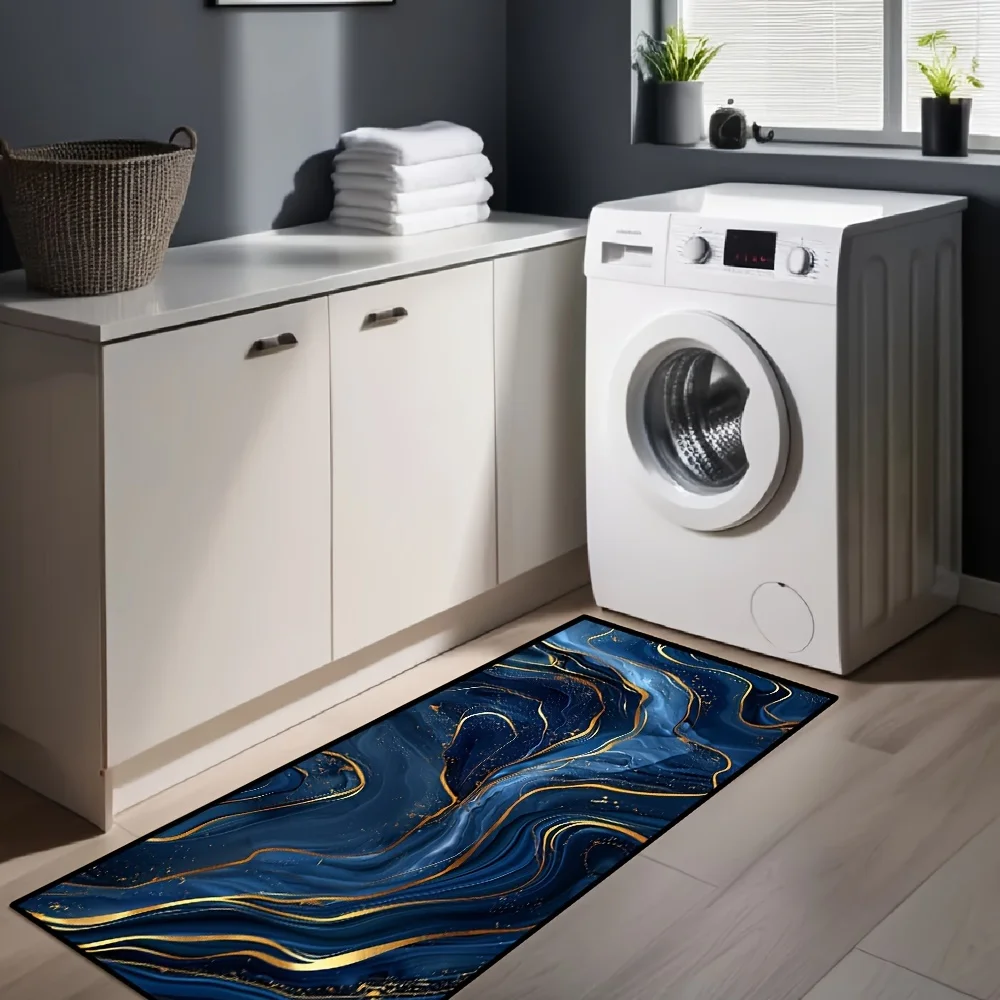 VIKAMA Runner Rug Long Carpet High-End Blue Floor Mat Hallway Rug Kitchen Rug Living Room Carpet Bedroom Carpet Home Decoration